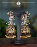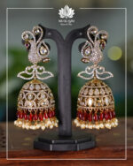 Victorian Peacock – AD, Moissanite, Kundan Polki With Pearl Drops Jhumka